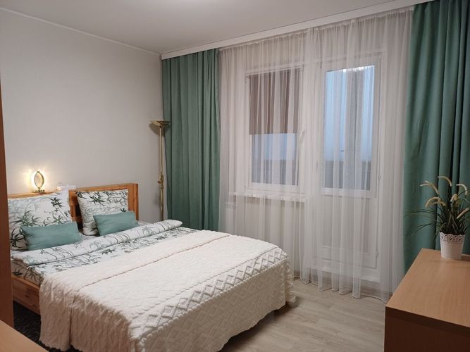 Светлая и уютная двухкомнатная квартира с раздельными комнатами в Минске. Жилье отлично подходит для комфортного размещения до 5 гостей (спальные места: 2+2+1), включая большую двуспальную кровать (160 см), угловой диван и односпальную тахту. Квартира полностью укомплектована современной бытовой техникой для вашего удобства: большой ЖК-телевизор в гостиной и дополнительный телевизор на кухне, холодильник, индукционная плита, духовой шкаф, микроволновая печь, посудомоечная машина и кофемашина. Для поддержания чистоты предусмотрен робот-пылесос. Также в распоряжении гостей стиральная машина, водонагреватель, фен, утюг с гладильной доской и кулер для воды. На кухне подготовлена вся необходимая посуда и столовые приборы. В стоимость проживания входит комплект свежих полотенец и доступ к бесплатному Wi-Fi. Наличие балкона и лоджии позволяет наслаждаться видом из окна, а для автовладельцев предусмотрена бесплатная парковка. Дом имеет удобное транспортное сообщение с центром города и быстрый выезд к основным магистралям. Идеальный вариант для тех, кто ценит комфорт и тишину, оставаясь при этом в мобильности.