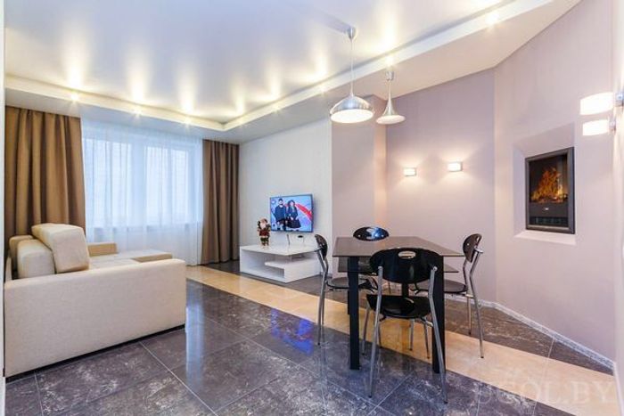 Стильная и современная квартира-студия расположена на высоком этаже, откуда открывается живописный вид на город. Апартаменты полностью укомплектованы всем необходимым для комфортного отдыха и работы: большая кровать с ортопедическим матрасом, рабочая зона, два 55-дюймовых телевизора, кондиционер и бесплатный Wi-Fi. Кухня оснащена современной техникой: холодильником, плитой, духовкой, микроволновой печью, кофемашиной и всей необходимой посудой. Особую атмосферу уюта создают камин и джакузи. Локация и транспорт: Дом находится в 5 минутах ходьбы от станции метро «Грушевка» и остановок общественного транспорта. До центра Минска можно добраться на автомобиле всего за 5 минут. В шаговой доступности расположены ТРЦ, кафе, магазины, парковки и заправки. Сервис и удобства: Гостям предоставляются чистые полотенца, свежее постельное белье, фен, утюг, стиральная машина и средства гигиены. Перед каждым заездом проводится тщательная уборка. Для командированных сотрудников предоставляются отчетные документы. Возможен безналичный расчет. Дополнительная информация: В апартаментах запрещено курение. Возможно проживание с домашними животными. Предусмотрена возможность раннего заезда и позднего выезда по предварительному согласованию.