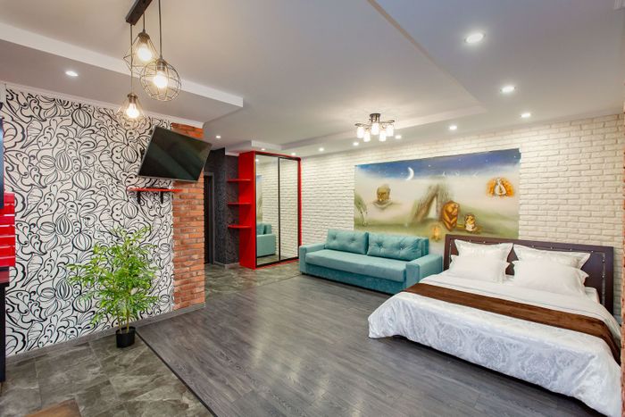 Стильная однокомнатная квартира-студия расположена на 19 этаже, откуда открывается завораживающий вид на Минск. Просторное жилое пространство разделено на функциональные зоны: для отдыха предусмотрена большая двуспальная кровать с качественным постельным бельем и раскладной диван. Современный интерьер и продуманное освещение создают атмосферу уюта для комфортного проживания. Кухонная зона полностью укомплектована необходимой техникой: в распоряжении гостей холодильник, микроволновая печь, посудомоечная машина и полный набор посуды. Также в квартире есть стиральная машина, утюг, фен и телевизор. Доступен бесплатный Wi-Fi. Ванная комната оборудована полноценной ванной и современной сантехникой, предоставляются комплекты полотенец. Наличие балкона (лоджии) позволяет еще лучше насладиться высотными видами города. Дом имеет отличное расположение — всего в 300 метрах от станции метро «Петровщина», что позволяет быстро и удобно добраться в любую точку столицы.
