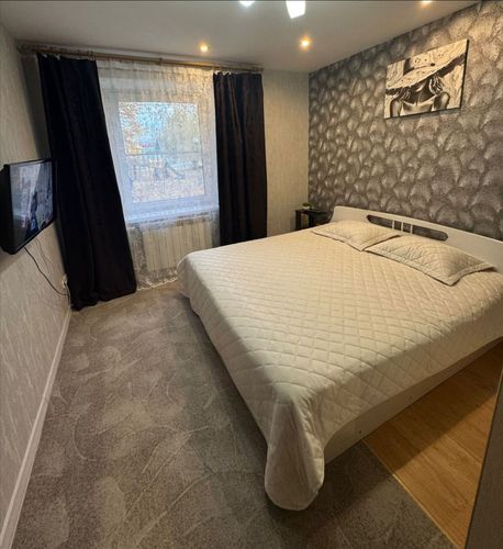 Светлая и просторная двухкомнатная квартира в Витебске, расположенная в районе с развитой инфраструктурой прямо напротив ТЦ Green. Жилье отлично подходит для комфортного размещения до 6 человек благодаря продуманной планировке с изолированными комнатами и наличию 4 раздельных спальных мест (конфигурация 2+2+1+1: большая кровать шириной 190 см, удобный двуспальный диван, одноместная кровать и кресло-кровать). Квартира полностью укомплектована необходимой бытовой техникой и инвентарем: установлена стиральная машина, есть микроволновая печь, духовка, плита, холодильник, фен и утюг с гладильной доской. Для вашего удобства в каждой комнате установлен телевизор и работает высокоскоростной Wi-Fi. Кухня оснащена полным набором посуды и столовых приборов. Окна выходят в тихий благоустроенный двор с детской игровой площадкой и тренажерами, есть застекленный балкон. Гостям предоставляется чистое постельное белье и комплекты полотенец. Расположение объекта позволяет добраться до центра города на автомобиле за 5-10 минут. В шаговой доступности находятся продуктовые магазины, аптеки, банки, Чкаловский и Южный рынки, а также остановки общественного транспорта. Для любителей активного отдыха рядом проходят велодорожки. Командированным сотрудникам предоставляются отчетные документы (чек НПД и договор). Заселение предусмотрено после 14:00, расчетный час — 12:00. Парковка автомобиля возможна во дворе дома.