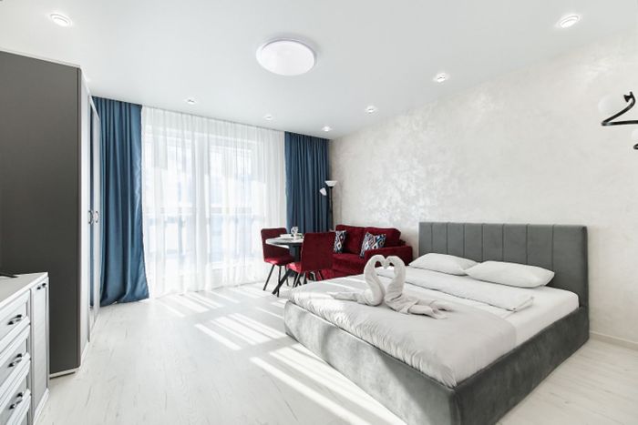 Светлая и современная студия расположена на 21 этаже в новом жилом комплексе «Минск Мир». Из окон квартиры открывается шикарный панорамный вид на город, что создает особую атмосферу уюта. Дом находится в районе с развитой инфраструктурой и отличным транспортным сообщением. Внутри есть все необходимое для комфортного проживания. Кухня полностью оборудована бытовой техникой: плитой, микроволновой печью, холодильником и электрическим чайником. Предусмотрен полный набор посуды и столовых приборов. Для вашего удобства в квартире имеются: — Бесплатный Wi-Fi и телевизор; — Стиральная машина, утюг и фен; — Душевая кабина, комплект свежих полотенец; — Застекленный балкон/лоджия; — Бесплатная парковка во дворе дома.