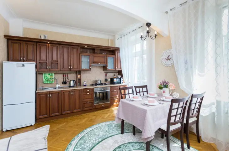 Светлые и просторные апартаменты в самом центре Минска на проспекте Независимости, в районе площади Якуба Коласа. Квартира располагается на втором этаже кирпичного дома и включает в себя большую гостиную-столовую и две изолированные спальни, в каждой из которых имеется балкон. Для комфортного проживания предусмотрено все необходимое. Кухня оснащена газовой плитой, духовкой, микроволновой печью, холодильником, электрочайником, а также полным набором посуды и столовых приборов. В спальных зонах установлены ортопедические кровати и диван. В наличии полный комплект техники: телевизор, стиральная машина, утюг, гладильная доска и фен. В санузле установлен бойлер, что гарантирует наличие горячей воды. Гостям предоставляется чистое постельное белье, запасные полотенца и туалетные принадлежности. Проводится обязательная уборка перед заселением. Расположение идеально подходит для активного отдыха и решения деловых вопросов. В шаговой доступности находятся станция метро, ЦУМ, медицинский центр «Лодэ», Комаровский рынок и оздоровительный центр с бассейном. Рядом расположены многочисленные рестораны, включая «Лидо» и «Старые традиции», а также казино и развлекательные центры. Для заселения требуется документ, удостоверяющий личность.
