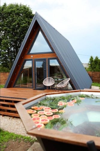 Приглашаем отдохнуть в стильном треугольном доме Paradise House, расположенном в живописном месте деревни Малаховцы, всего в 13 км от Барановичей. Это уединённый А-фрейм с панорамными окнами, созданный для тех, кто ценит эстетику, комфорт и тишину. Домик идеально подходит для романтического уикенда, семейного отдыха или атмосферных фотосессий. Внутри предусмотрено всё для полноценного проживания: — Уютная гостиная с мягкой зоной, телевизором и кондиционером (сплит-система); — Спальня на втором ярусе с комфортным спальным местом; — Полноценная кухня с индукционной плитой, микроволновой печью, холодильником, чайником и набором красивой посуды для сервировки. В наличии чай, кофе, специи и масло; — Санузел с душем, феном, комплектом полотенец и косметическими принадлежностями (шампунь, маски, пенка для умывания); — Бесплатный Wi-Fi на всей территории. Придомовая территория полностью огорожена и благоустроена для вашего отдыха: — Банный чан под открытым небом (подготавливается к вашему приезду по запросу); — Костровая зона в стиле Pinterest и терраса с видом на природу; — Оборудованная площадка для барбекю с мангалом, решеткой и дровами; — Летний бассейн и бесплатная парковка. Предусмотрены скидки при бронировании на несколько суток. Дети до 3 лет проживают бесплатно (предоставляется манеж-кровать по запросу). Заселение организовано с 15:00, выселение — до 12:00. Добраться до локации удобно с помощью навигатора.